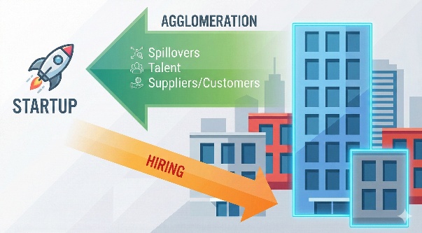 This blog reviews an article from the Harvard Business Review that tackles a tough question: Is it really worth it for start-ups to base themselves in tech clusters alongside large firms? Many start-ups choose to set up shop in “tech clusters” to access a rich pool of skilled workers. These areas, often populated by large firms, offer developed labor markets for technical, sales, and managerial staff. But there’s a catch: competing with big companies for talent can significantly drive-up salary costs, leaving start-ups with less capital for other key initiatives like experimentation and marketing.